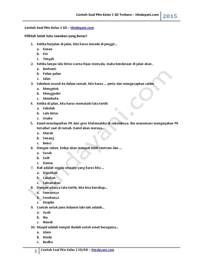 Berikut soal uts pts pkn kelas 1 sd semester 1 kurikulum 2013 beserta kunci.
